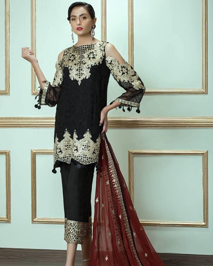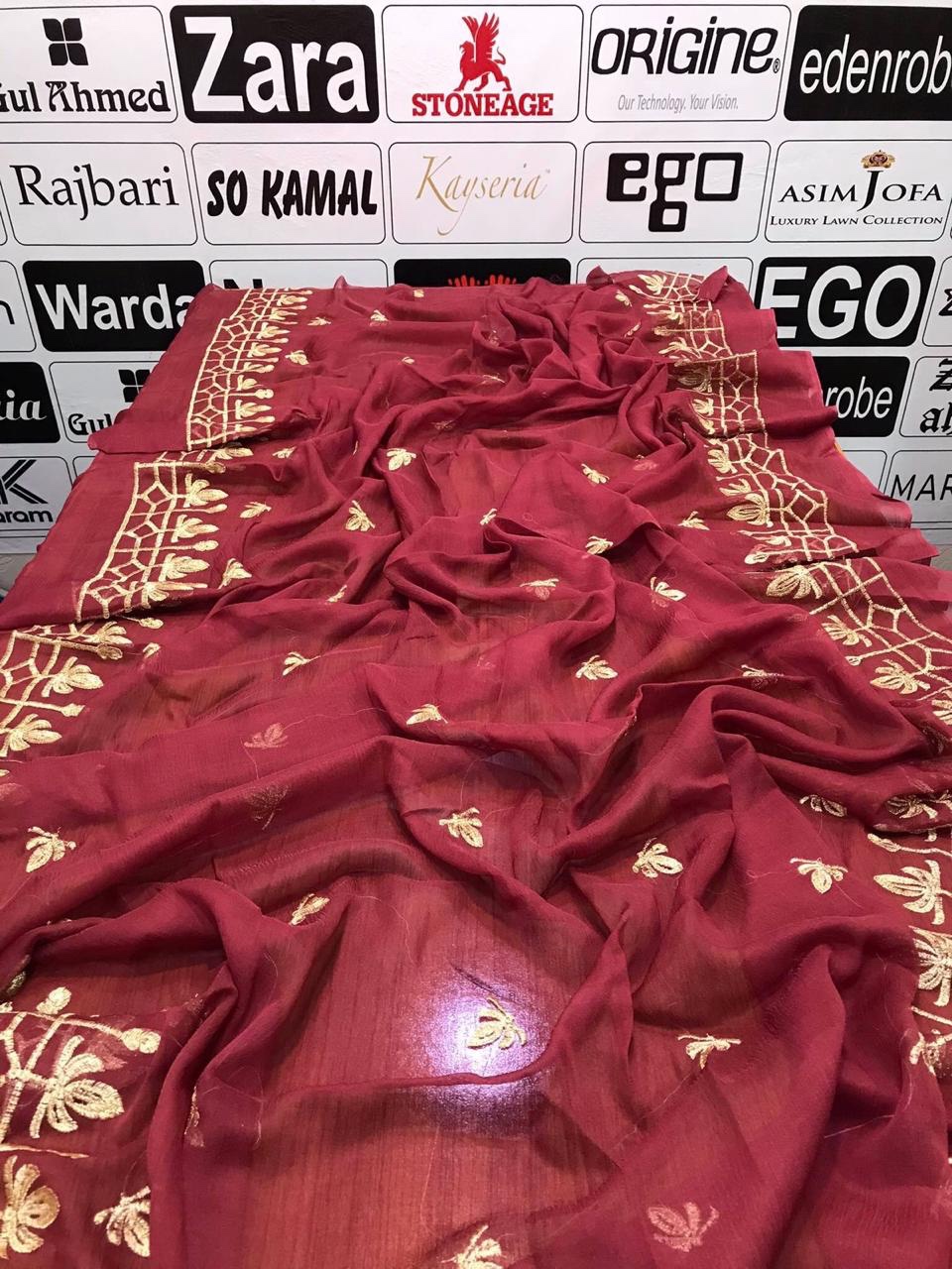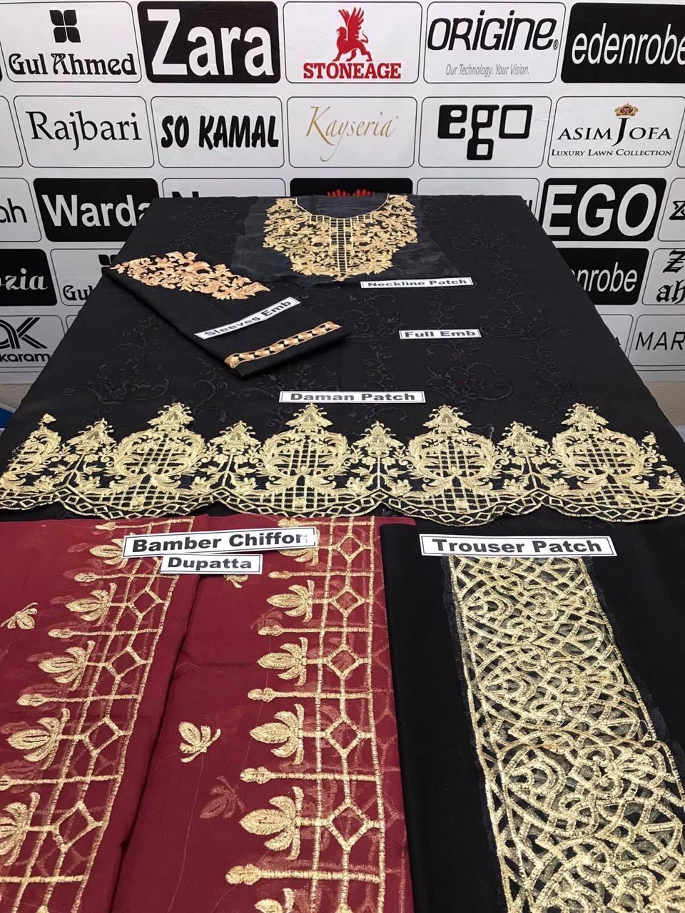 - Bamber Chiffon Dupatta Full Heavy Emb Work