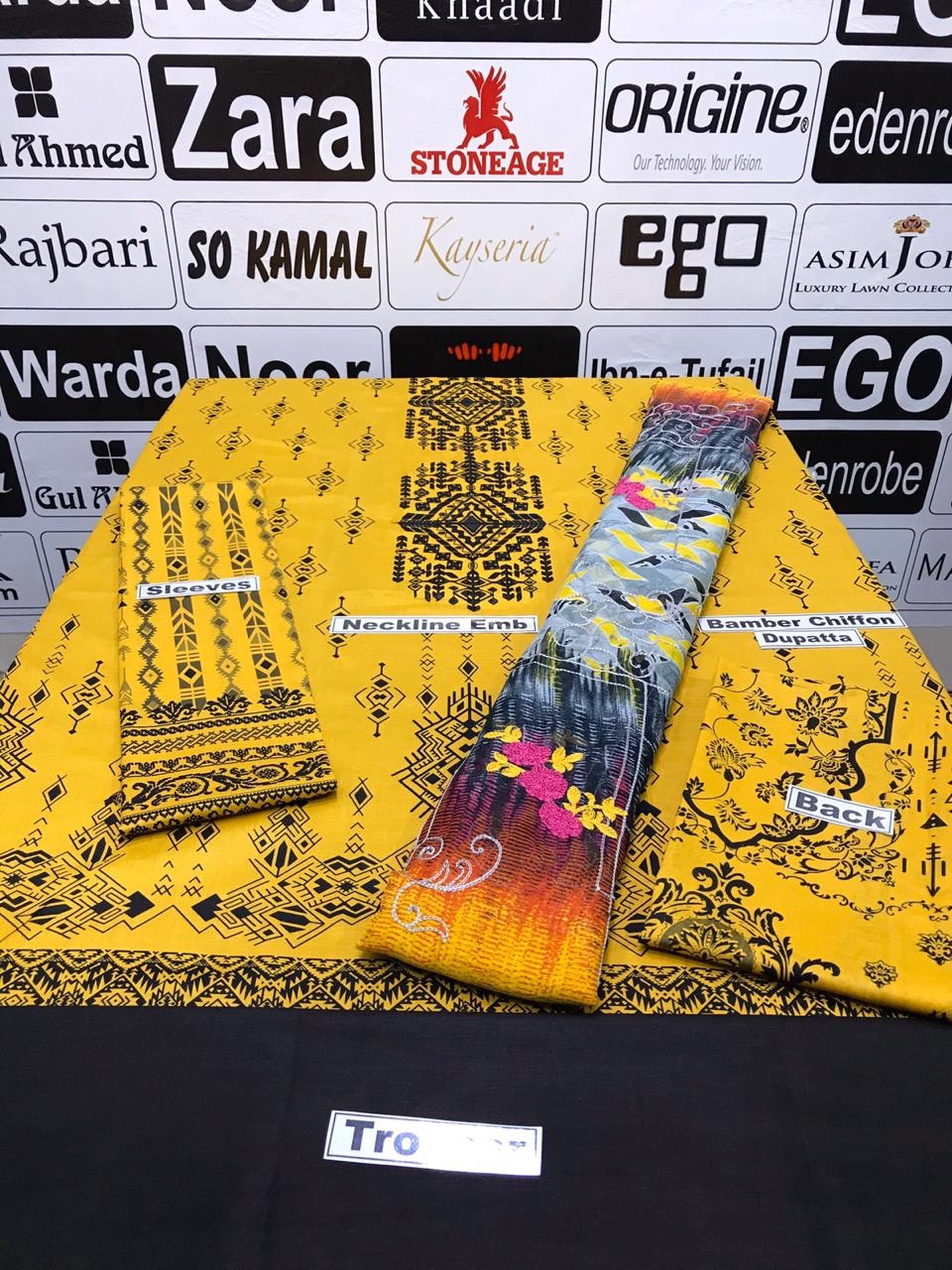 Brand AlZohaib Embroidered 3PC Lawn Dress with Embroidered Chiffon Dupatta