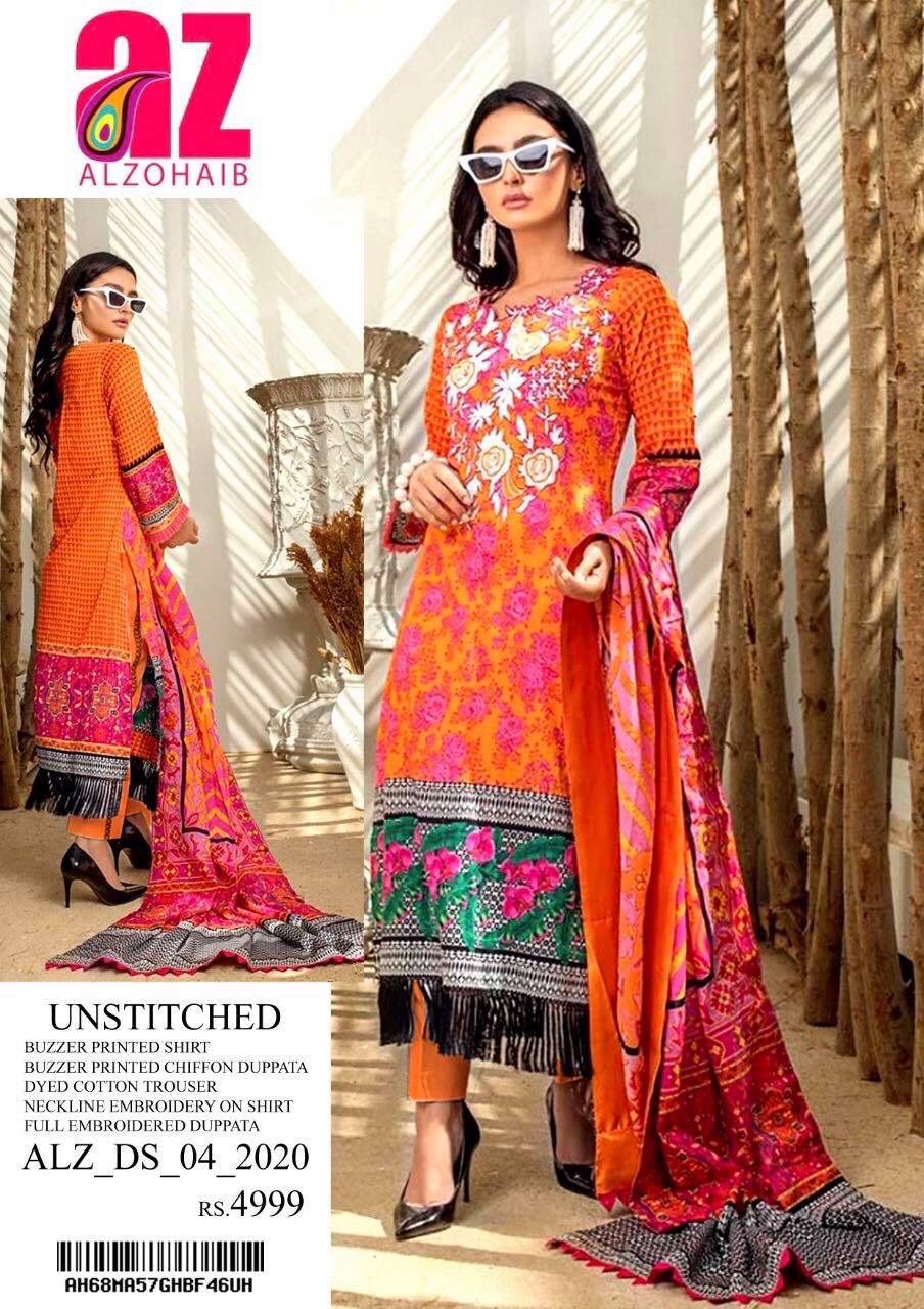 Brand AlZohaib Embroidered 3PC Lawn Dress with Embroidered Chiffon Dupatta
