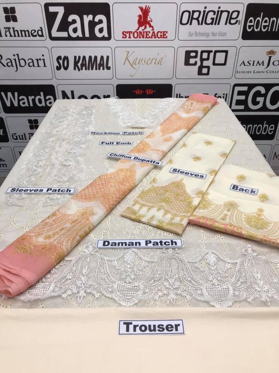 Brand Anaya Chickenkari 3PC Lawn Dress with Chiffon Dupatta