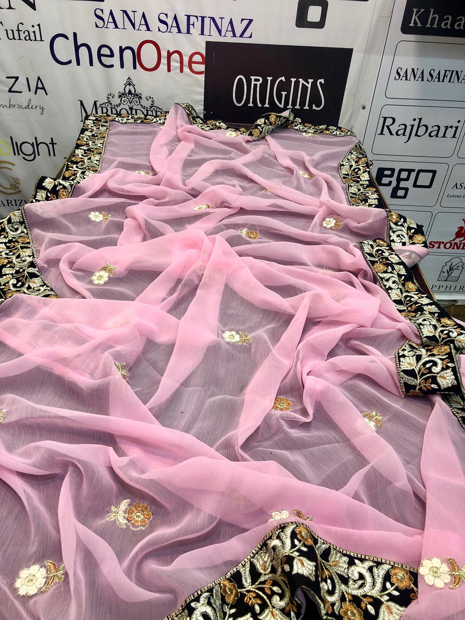 - Bamber Chiffon Four Sided Border Embroidered Dupatta