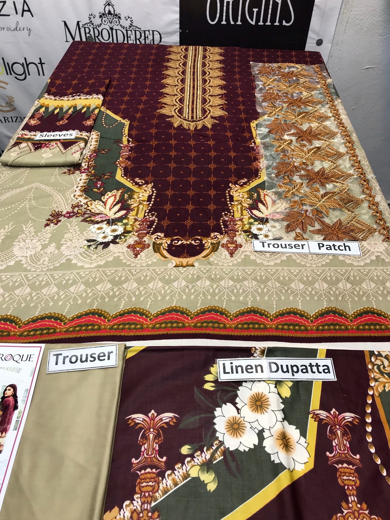 Buy Baroque Embroidered Linen Collection with Linen Dupatta in Pakistan. Ladies Replica Linen Suits Online Shopping in Pakistan. Replica Linen Clothing Online Shop in Pakistan. Pakistani Lawn Suits Online in Karachi, Lahore, Islamabad & all over Pakistan. Export Quality Original Printed Linen Suits. Cash on delivery.