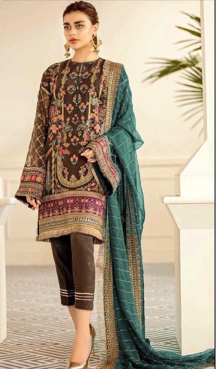 - Bamber Chiffon Dupatta Heavy Embroidery Cut Work