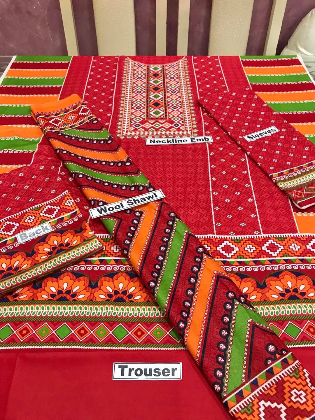 Brand Kayseria Embroidered 3PC Linen Dress with Wool Shawl