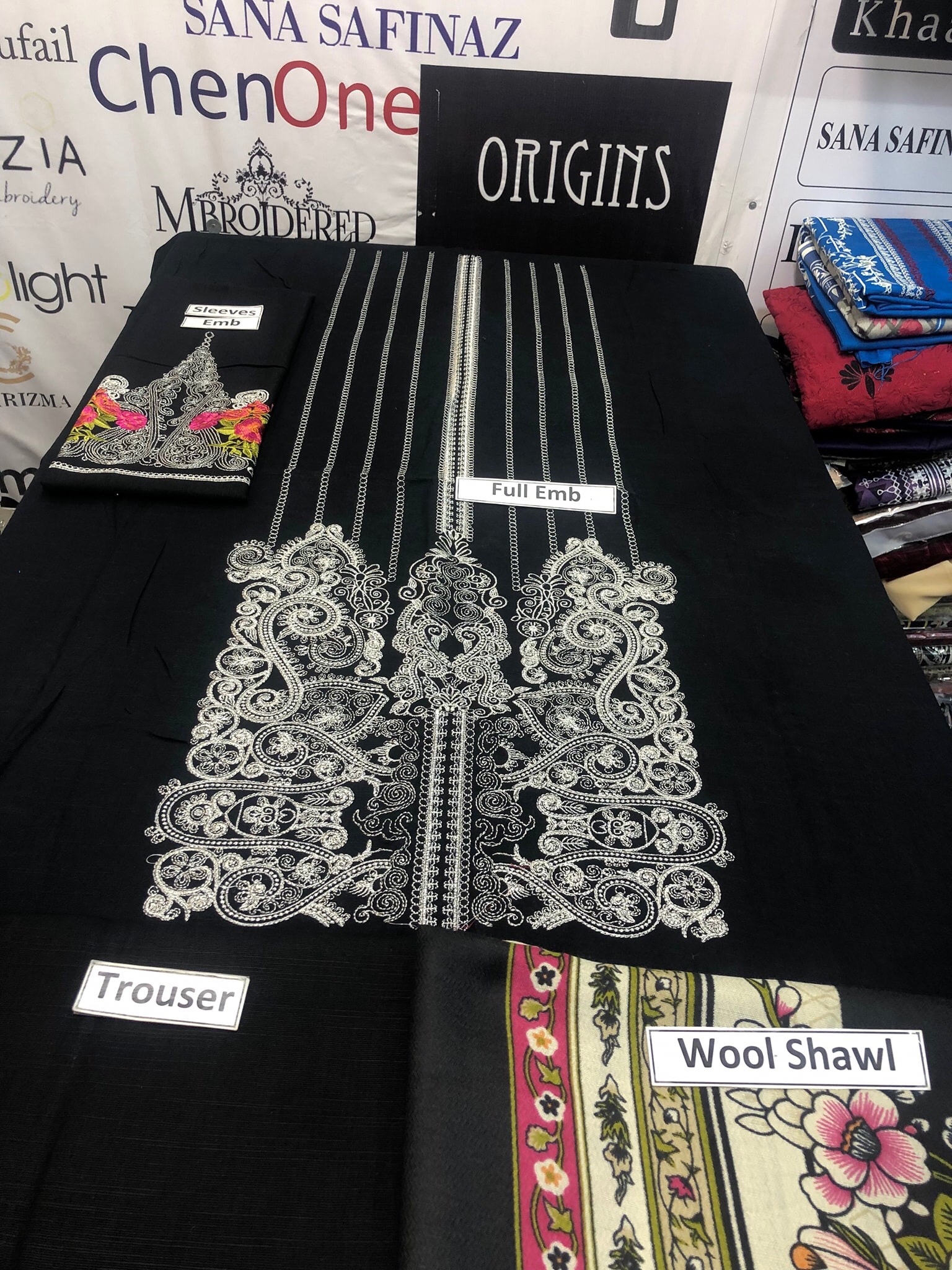 Brand Khaadii Embroidered 3PC Khaddar Dress with Wool Shawl