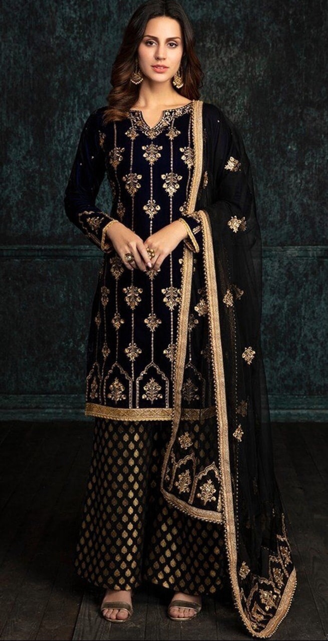 - Sleeves Full Heavy Embroidery Work On Velvet Base