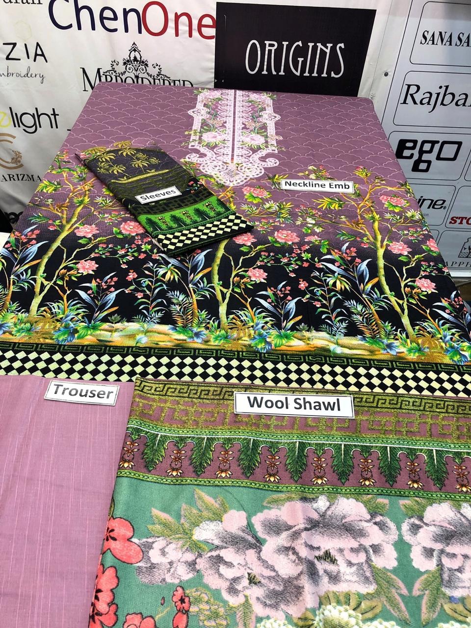 Brand Maria.B Embroidered 3PC Khaddar Dress with Wool Shawl