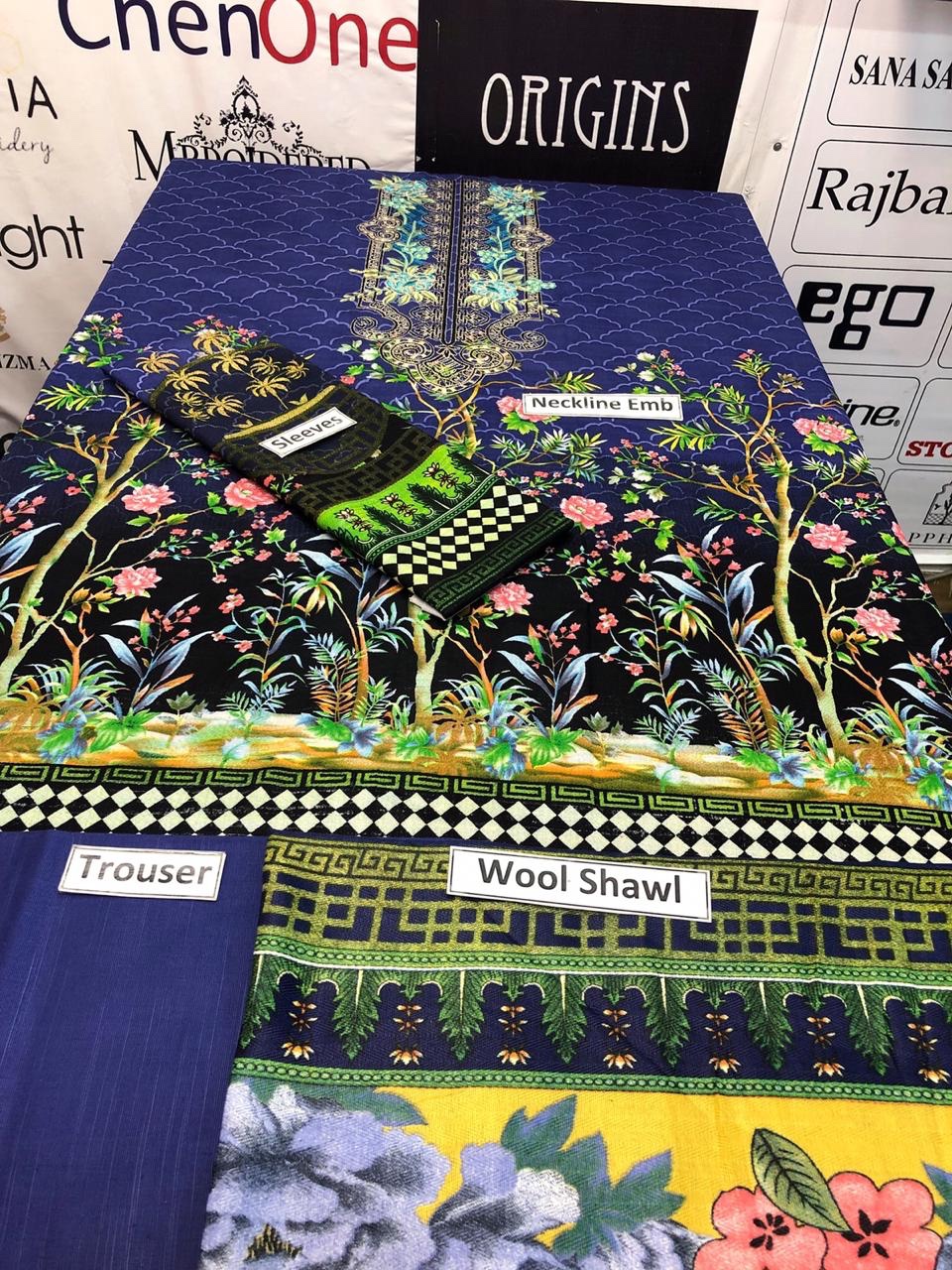 Brand Maria.B Embroidered 3PC Khaddar Dress with Wool Shawl