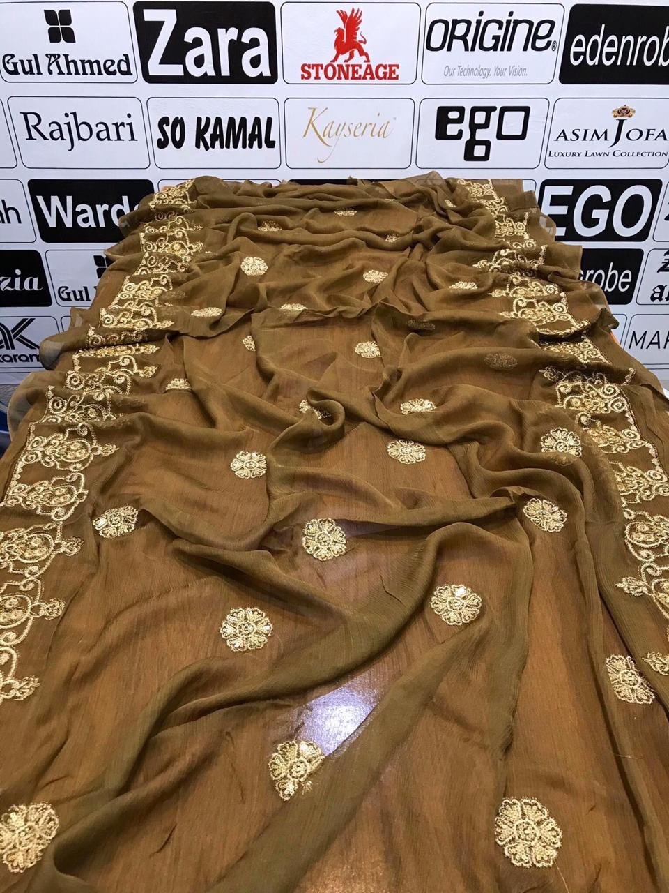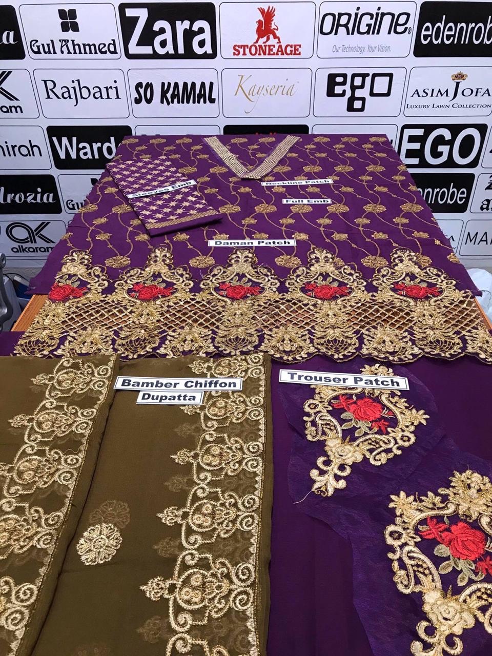 • Bamber Chiffon Dupatta Full Heavy Emb Work