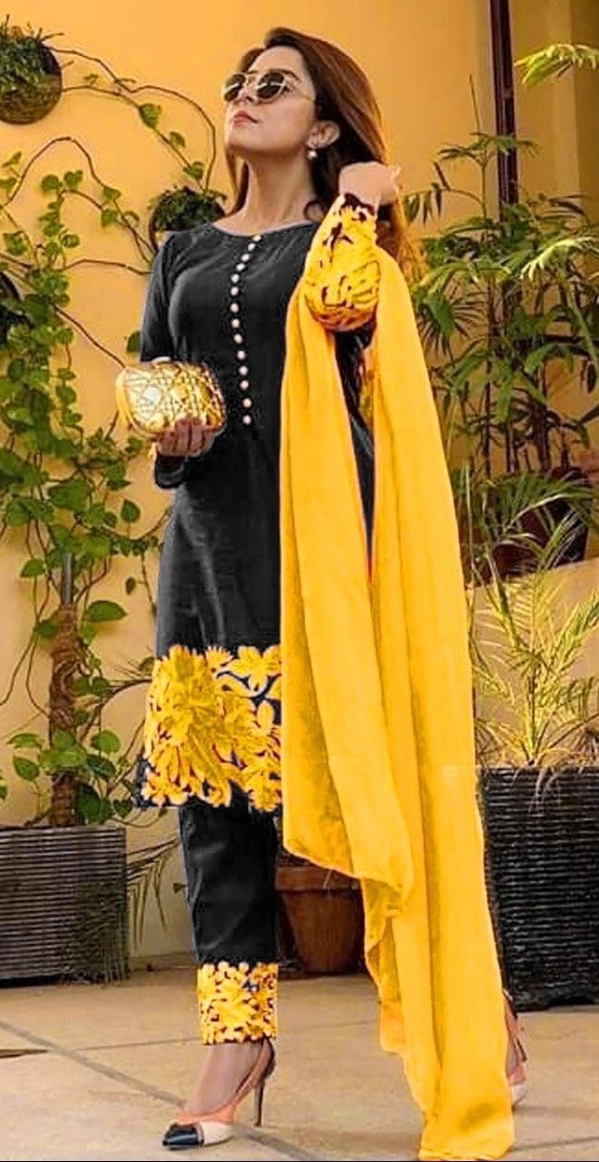 • Bamber Chiffon Full Heavy Embroidery Work Dupatta