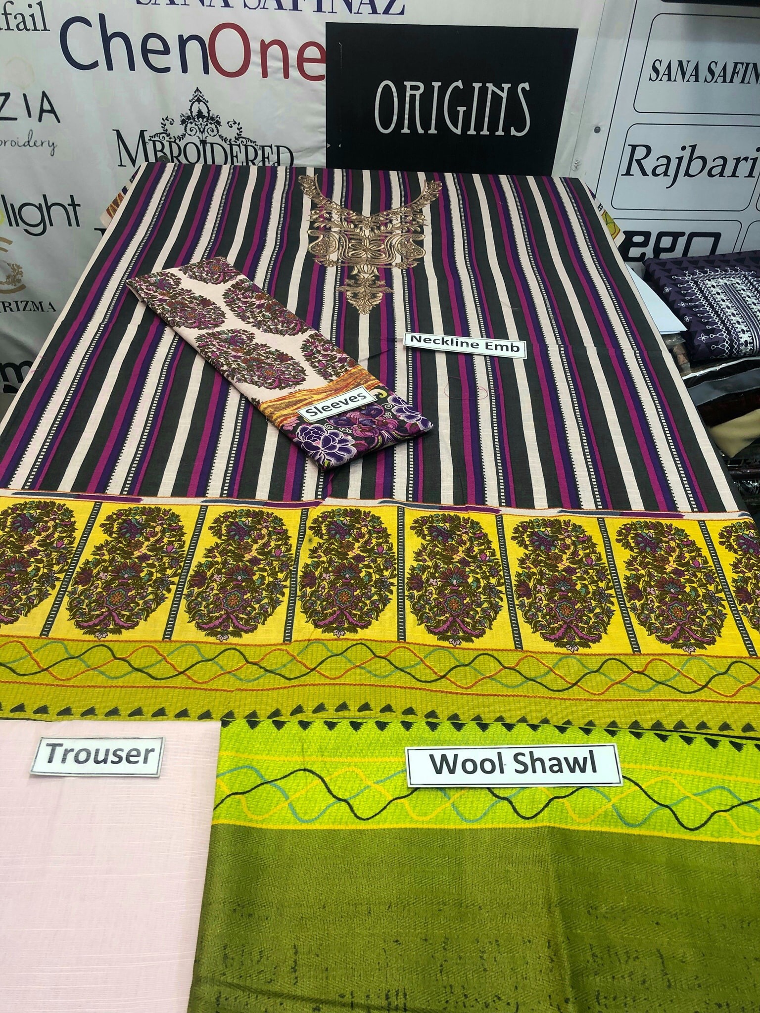 Brand Sana Safinaz Embroidered 3PC Khaddar Dress with Wool Shawl