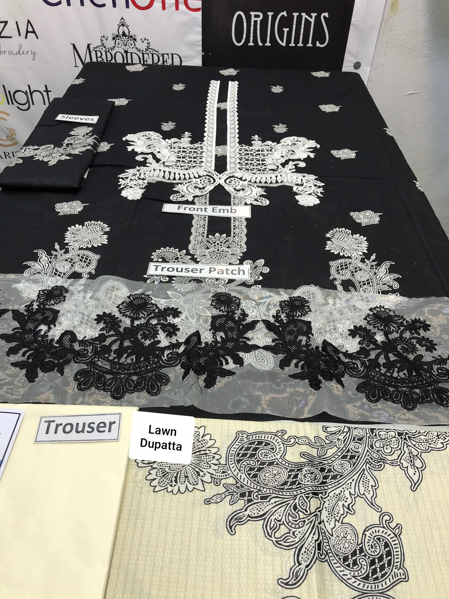 Brand Sana Safinaz Embroidered 3PC Lawn Dress with Chiffon Dupatta