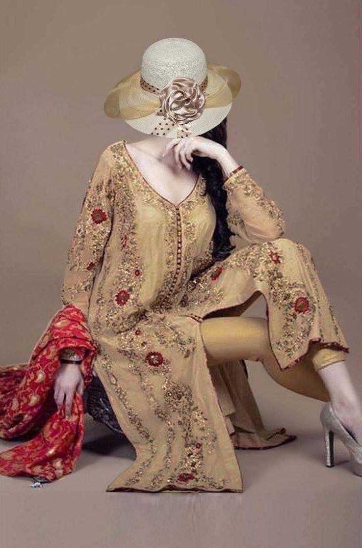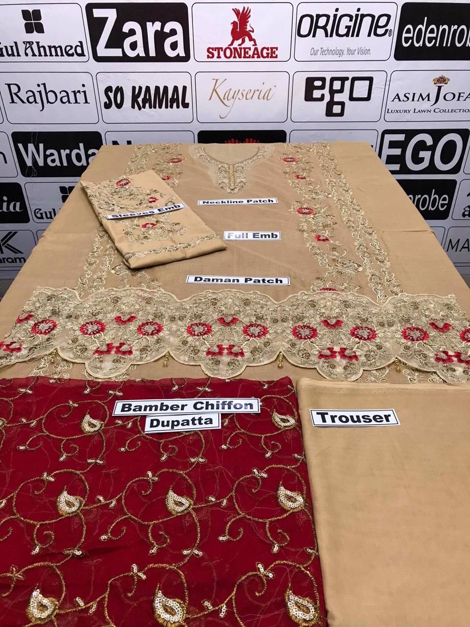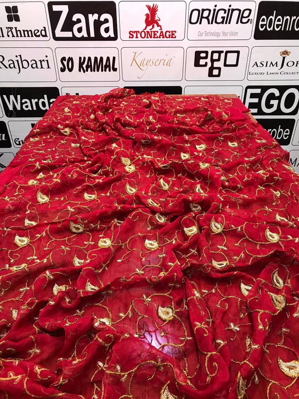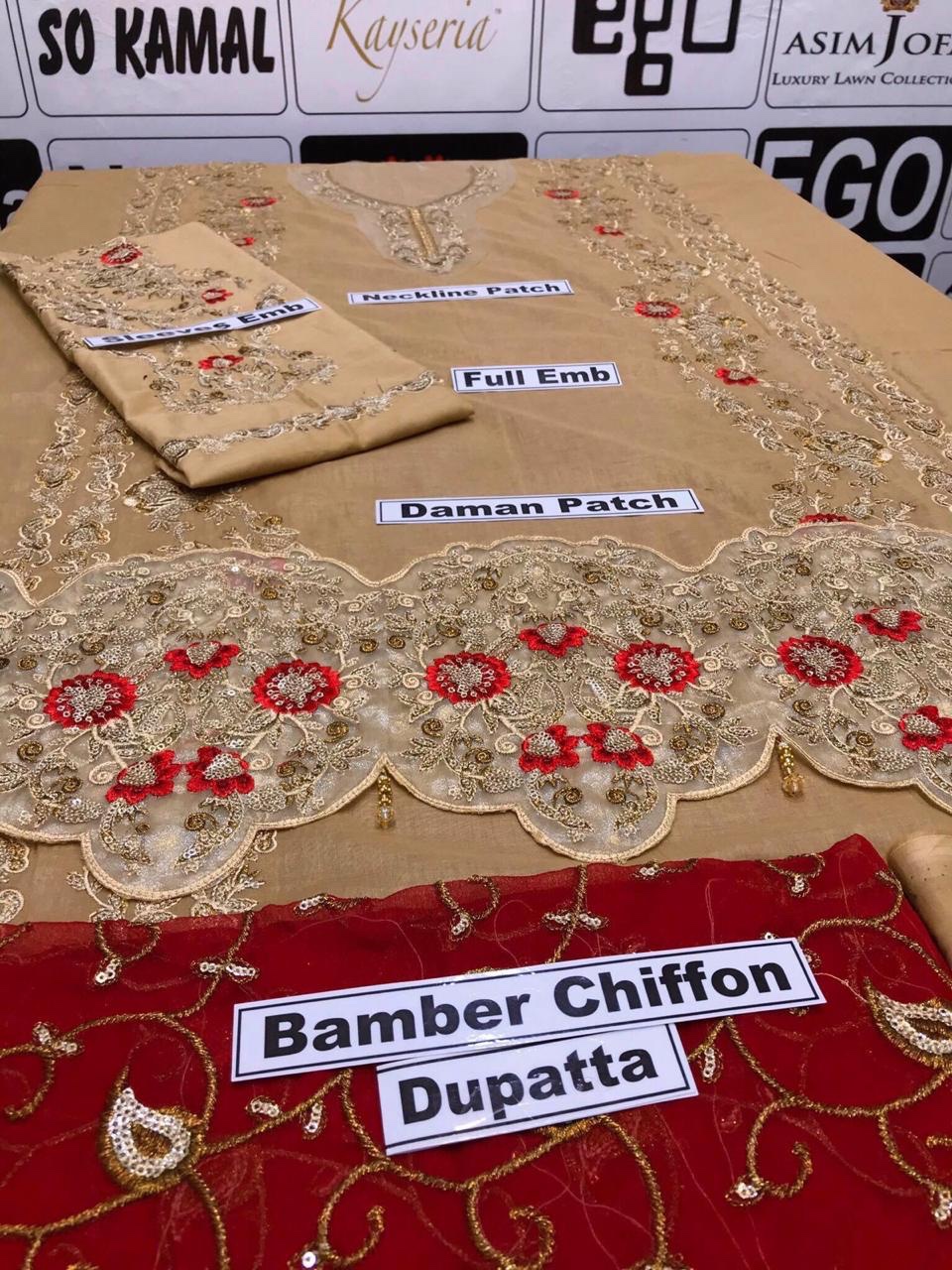 - Bamber Chiffon Dupatta Full Heavy Emb Work