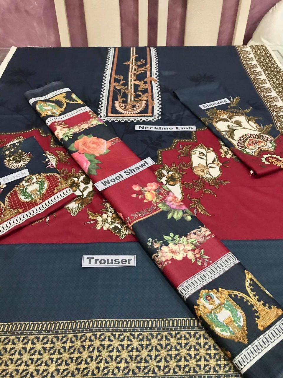 Brand Sapphire Embroidered 3PC Linen Dress with Wool Shawl