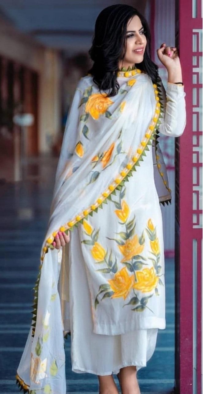 - Bamber Chiffon Full Heavy Embroidery Dupatta