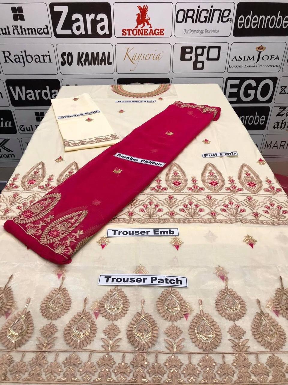 - Bamber Chiffon Full Heavy Embroidery Work Dupatta