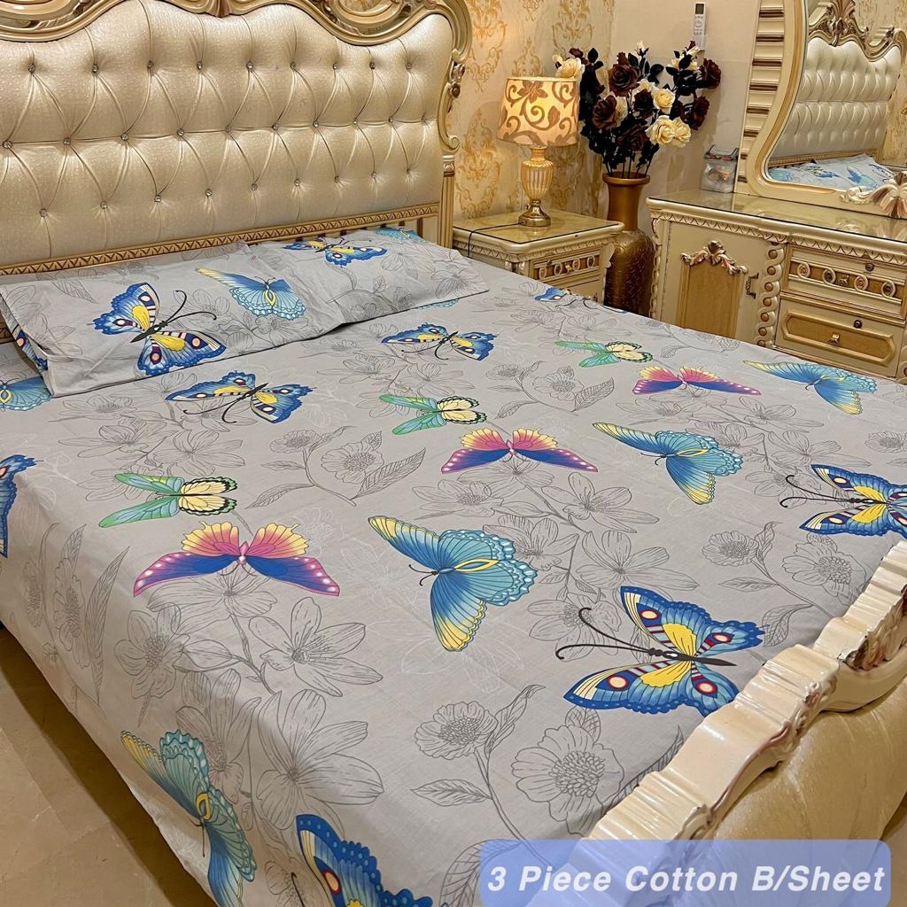 Cotton 3 Piece King Size Double Bedsheet