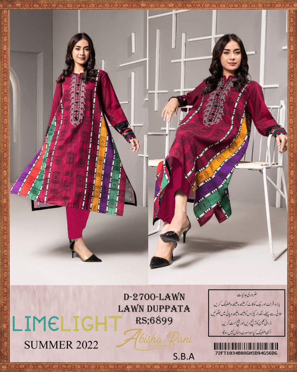 UNSTICHED LIMELIGHT D-2700 EMBROIDERED LAWN 3PC