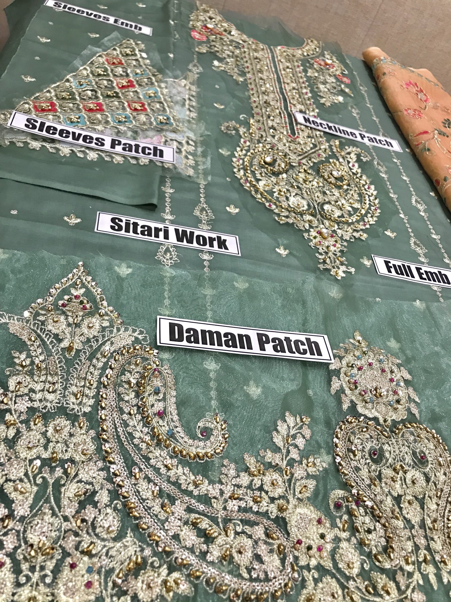 - Sleeves Full Heavy Emb & Handmade Stone Work Patch