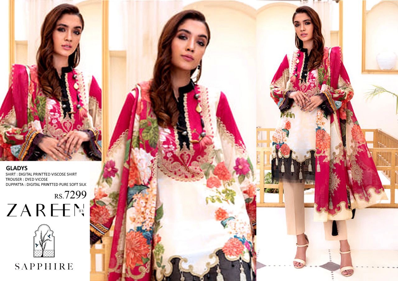 UNSTICHED ZAREEN BY SAPPHIRE V-GLADYS DIGITAL PRINTED VISCOSE 3PC