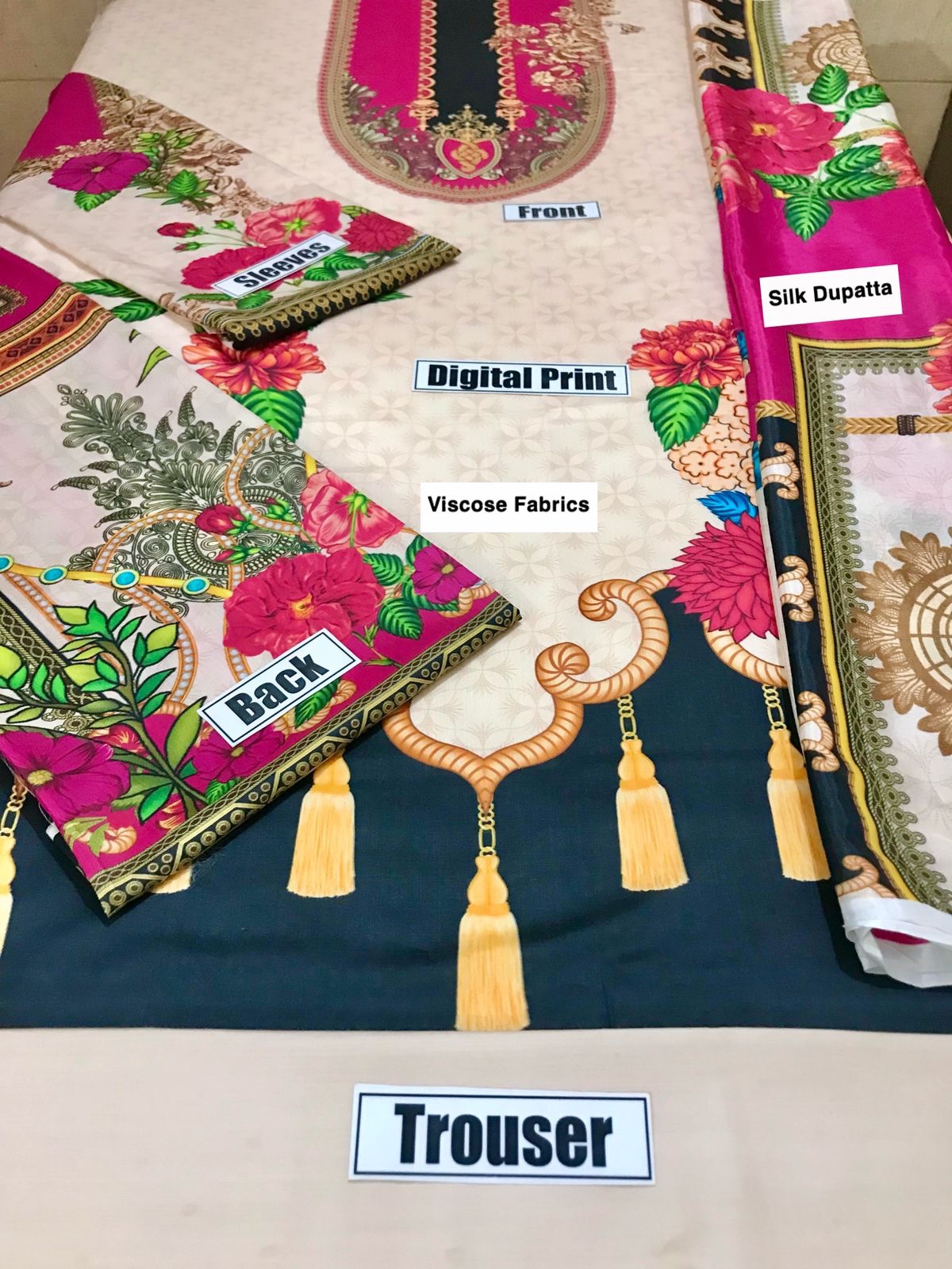 - Digital Printed Pure Silk Dupatta With Stamp