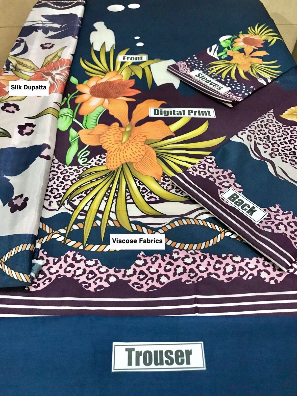 - Digital Printed Pure Silk Dupatta With Stamp