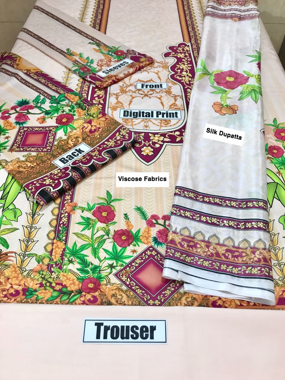 - Digital Printed Pure Silk Dupatta With Stamp