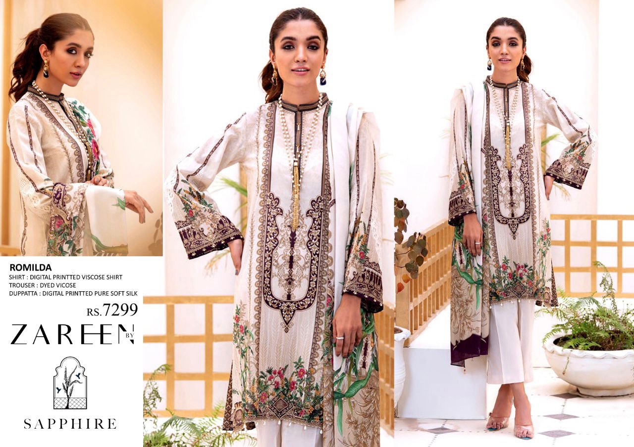 UNSTICHED ZAREEN BY SAPPHIRE V-ROMILDA DIGITAL PRINTED VISCOSE 3PC