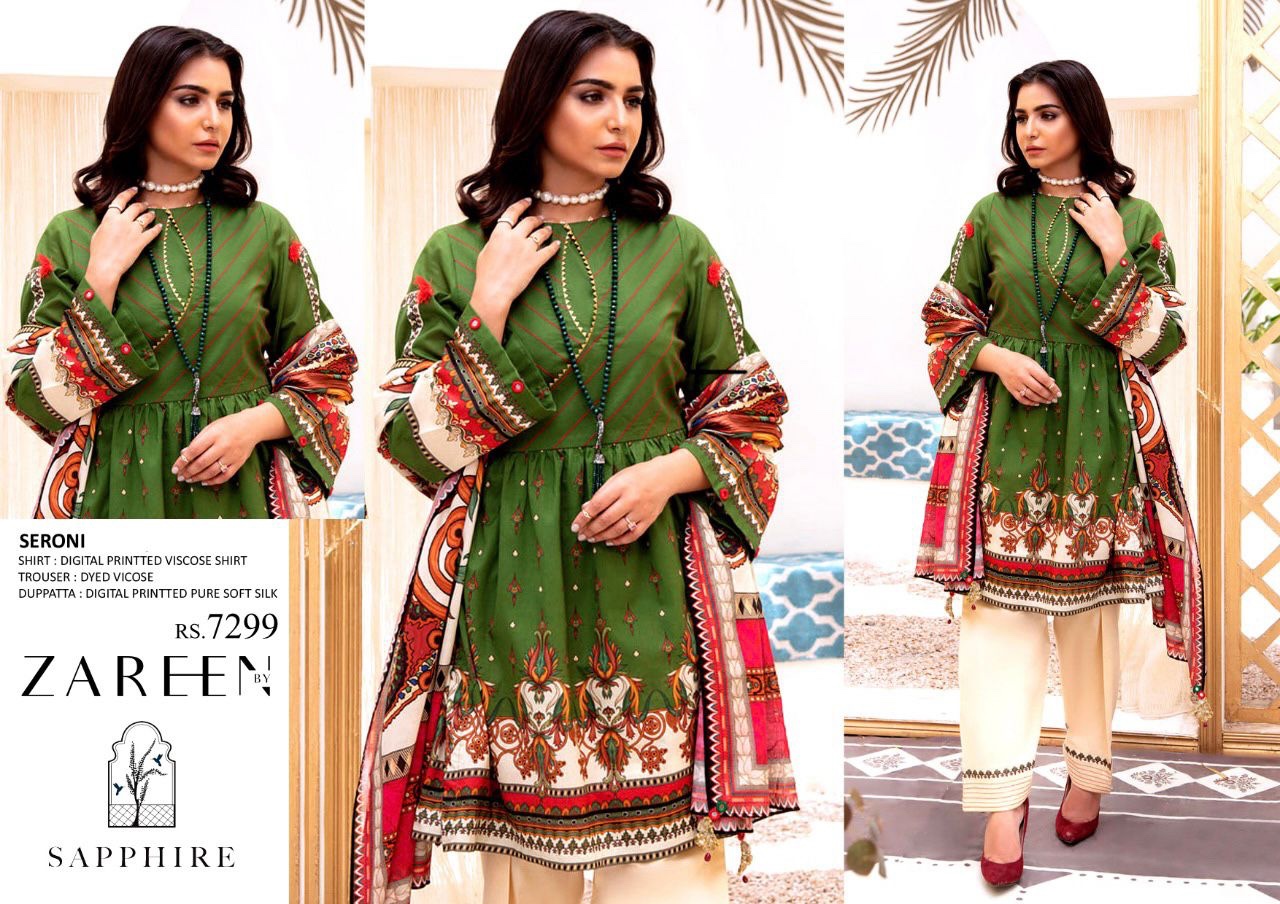 UNSTICHED ZAREEN BY SAPPHIRE V-SERONI DIGITAL PRINTED VISCOSE 3PC