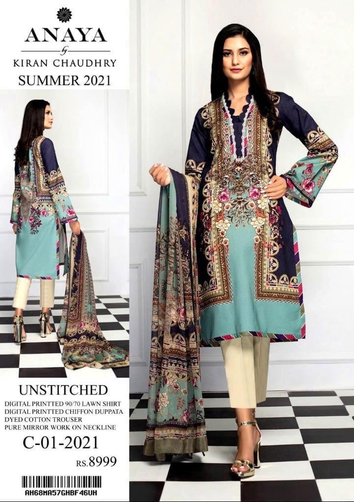 Unstitched Anaya C-01-2021 Embroidered Lawn 3PC