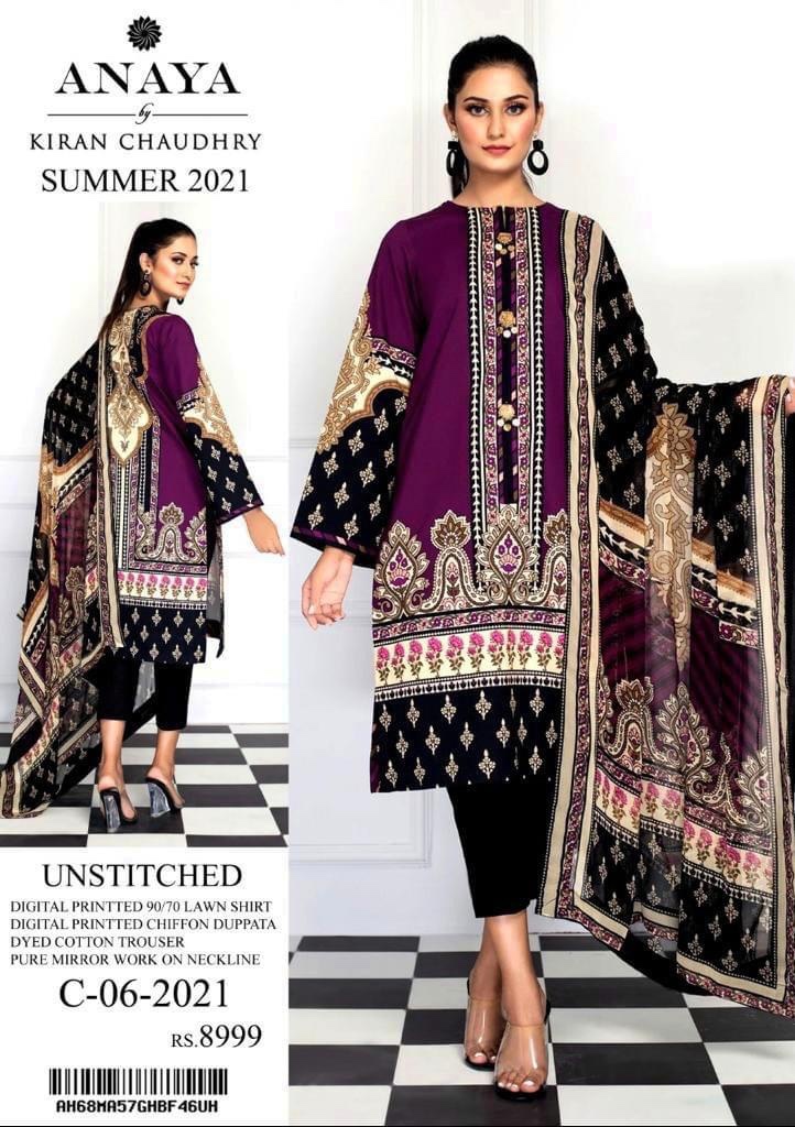 Unstitched Anaya C-06-2021 Embroidered Lawn 3PC