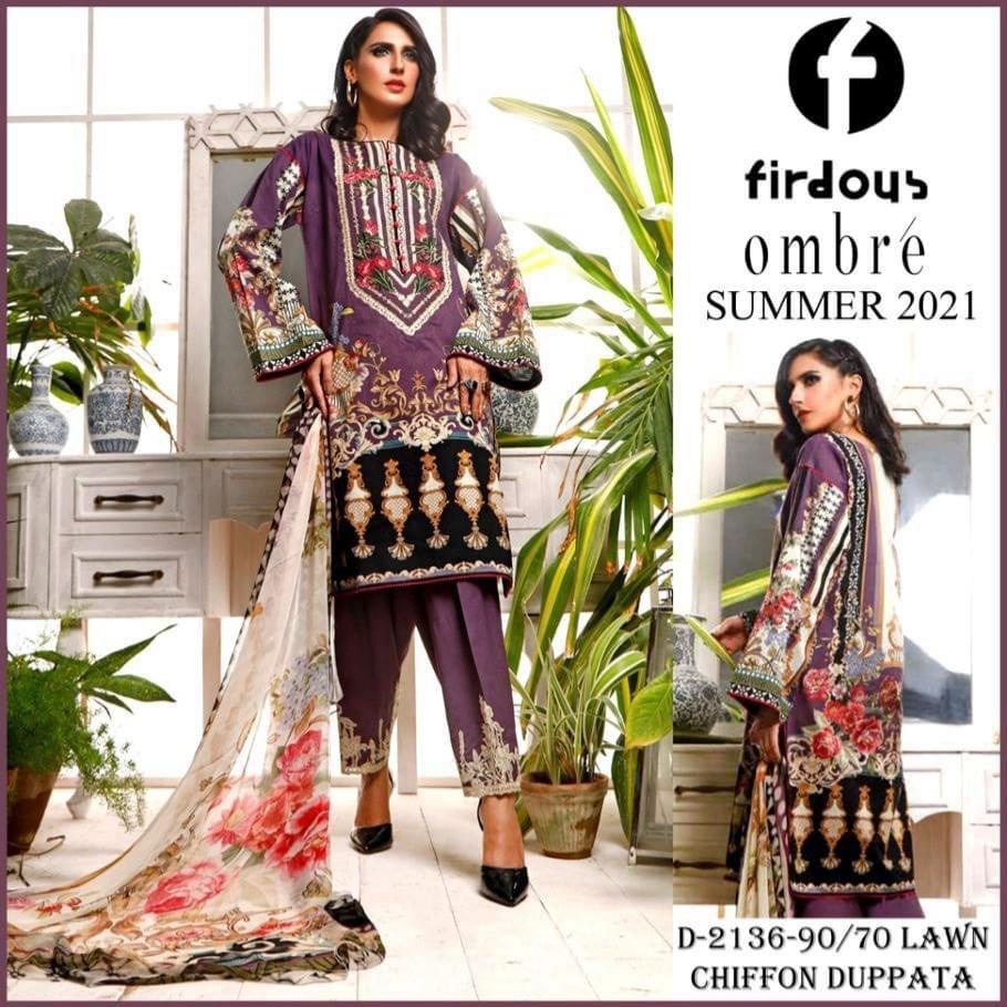 Unstitched Fridous D-2136 Embroidered Lawn 3PC