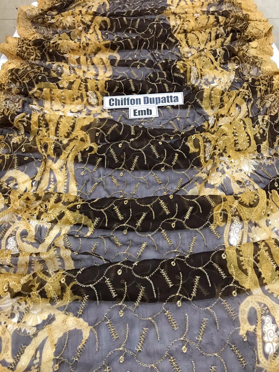 - Cutwork Chiffon Dupatta Full Heavy Emb Work