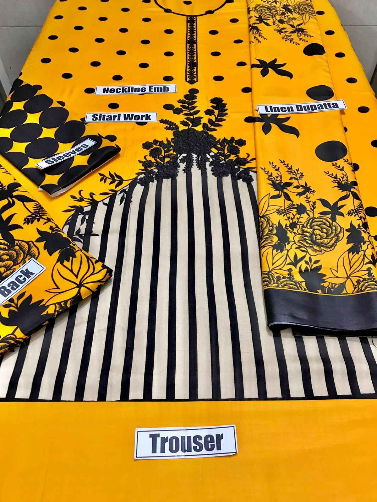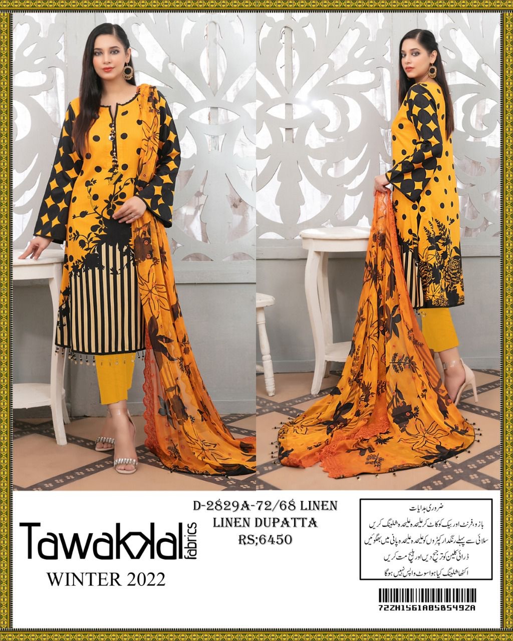 UNSTITCHED TAWAKAL EMBROIDERED LINEN 3PC